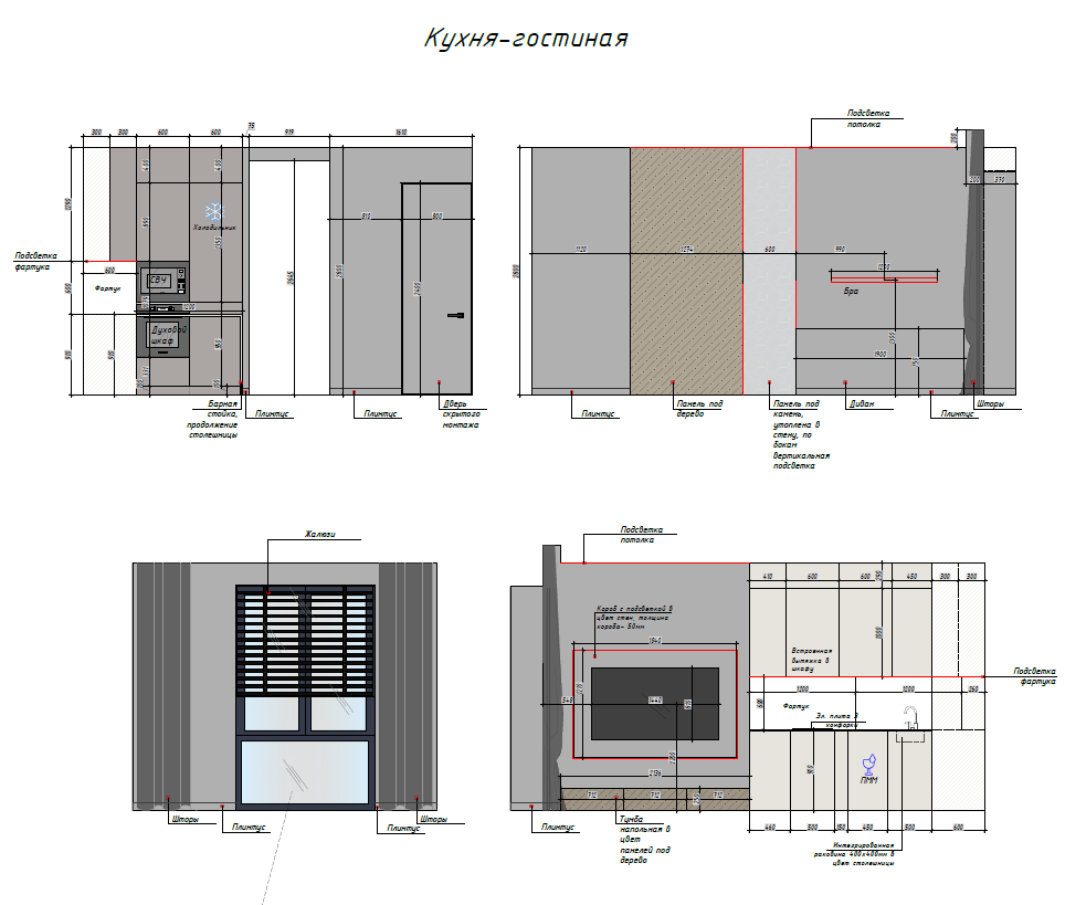 Развёртки помещений (или отдельно узлы, которые нужно изобразить на визуализации)